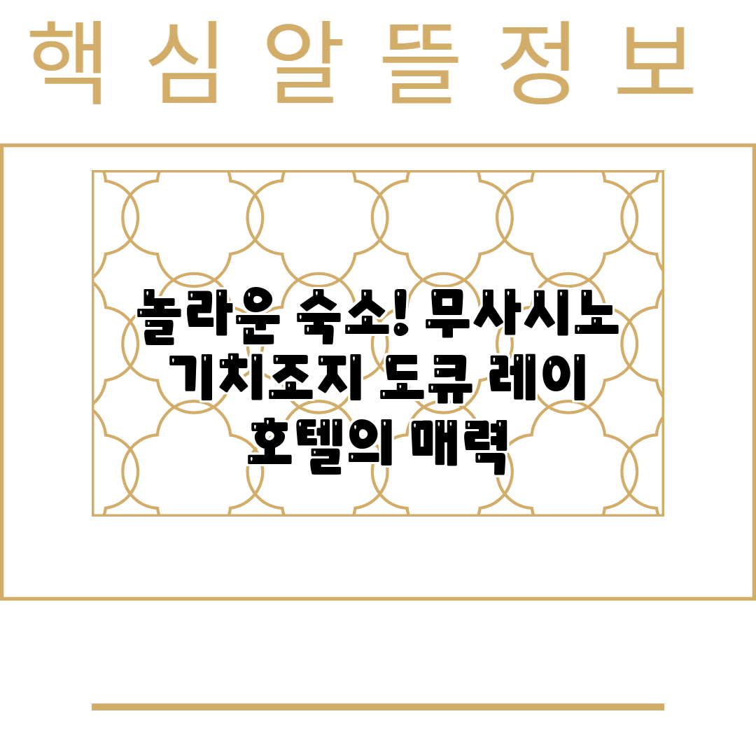 무사시노 기치조지 도큐 레이 호텔 추천 5가지