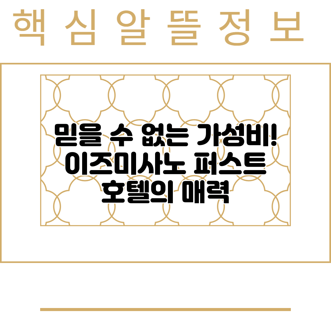 믿을 수 없는 가성비! 이즈미사노 퍼스트 호텔의 매력